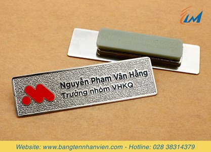 - Bảng ngân hàng MSB làm từ chất liệu đồng xi mạ bạc kết hợp hiệu ứng nền sần nổi độc đáo. Kích thước 2 x 7cm. Mặt trước sử dụng công nghệ in UV nội dung màu sắc theo yêu cầu. Mặt sau gắn nam châm để cài vào áo.